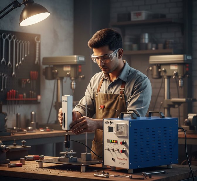 The Hexon Instruments Portable EDM Tap Drill Removal System is a powerful and reliable solution for removing broken taps, drills, reamers, and bolts without damaging the workpiece. Designed for on-site and workshop use, this compact EDM machine delivers high-precision material removal even in hardened metals.